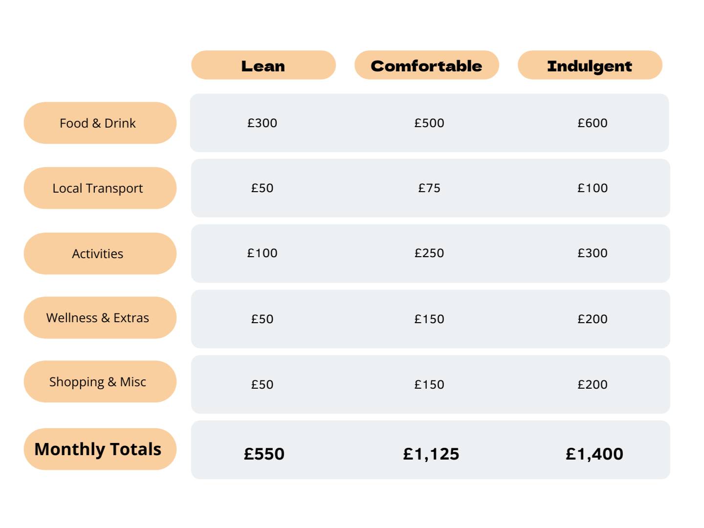 To make it even clearer, here’s what typical day-to-day costs look like across each destination: